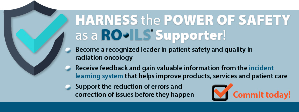 ASTRO and RO-ILS cannot do this without our supporters. By becoming a RO-ILS supporter, you are facilitating safer clinical practice, will be recognized as a quality and safety leader, and will make a difference for patient care. Other benefits* may include: